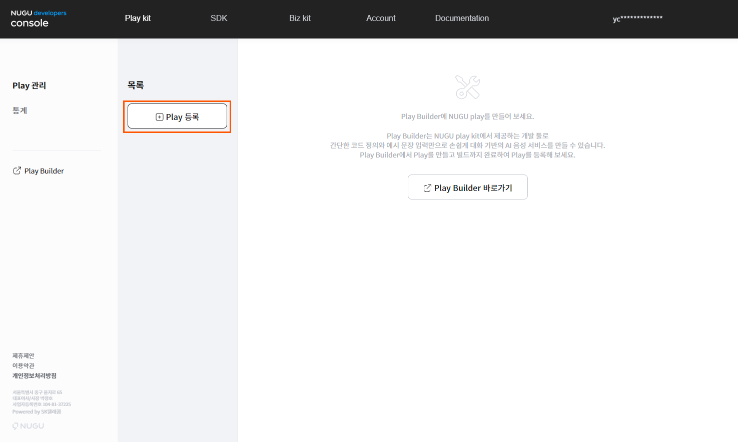 Play 서비스명은 Play Builder에서의 Play Name과 다르게 Developers에서 지정하는 이름이며, NUGU APP을 포함한 서비스 화면 노출 용도로 활용됩니다.