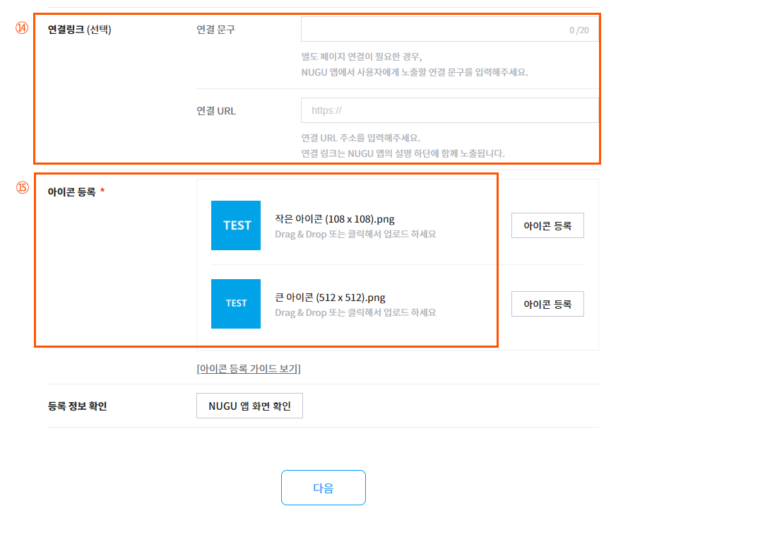 사용자가 계정을 연동할 수 있도록 이동하는 URL을 등록합니다.